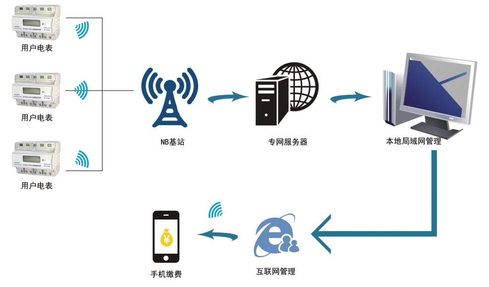 三相物聯網智能電表內置無線NB-IoT物聯網模塊和數據卡,無需任何調試上電自動連接微信公眾平臺,實現遠程抄表與電費自動按月結算。費用清單由業主登錄平臺審核后,租戶可通過微信查詢繳費,費用實時到賬。